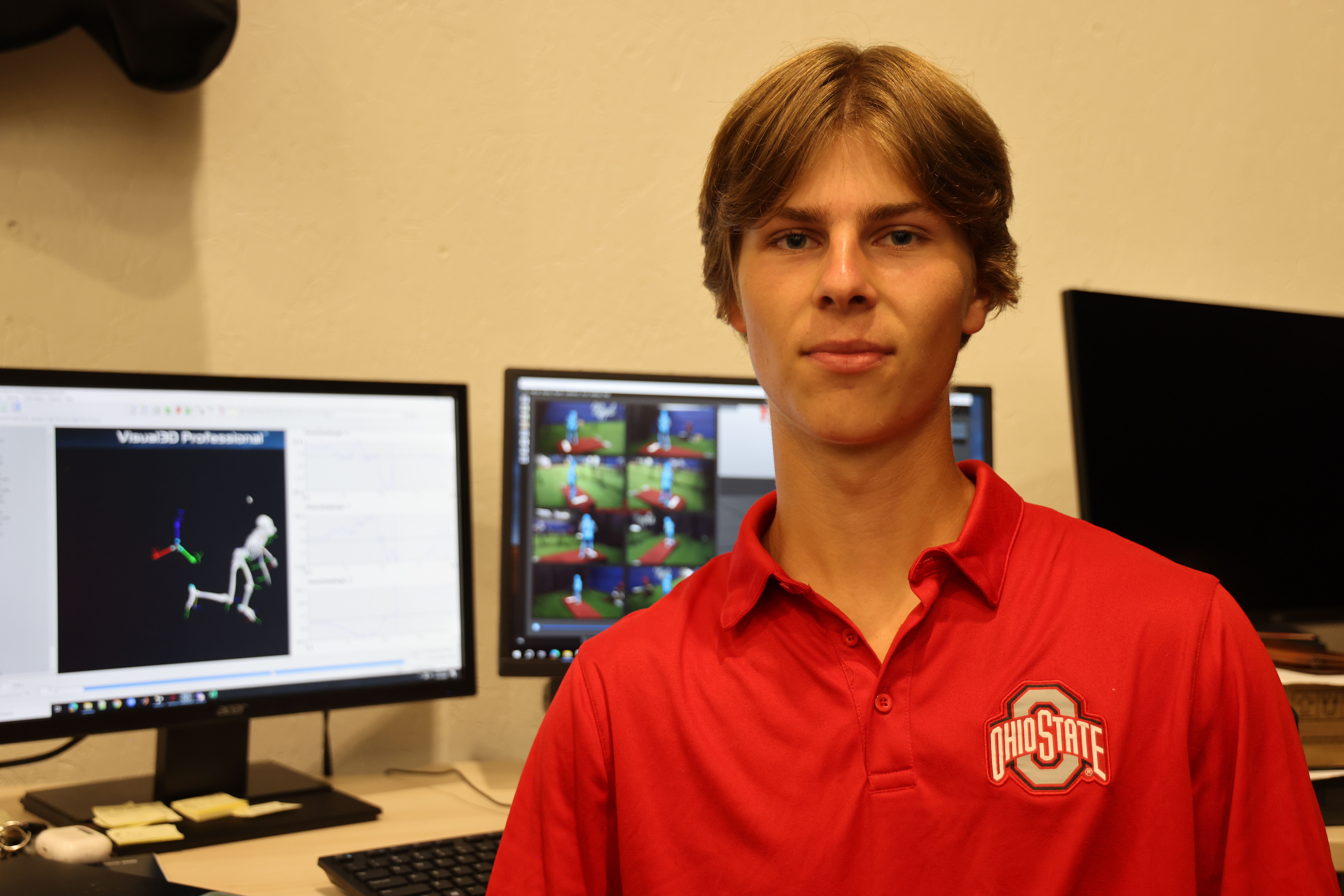 Over the summer, Brown’s research focused on isometric strength and fatigue-related biomechanics. The study involved upper extremity strength testing followed by a game-simulated bullpen session. Using advanced markerless motion capture technology, Brown collected and analyzed kinematic data to identify changes in movement patterns throughout the throwing session.